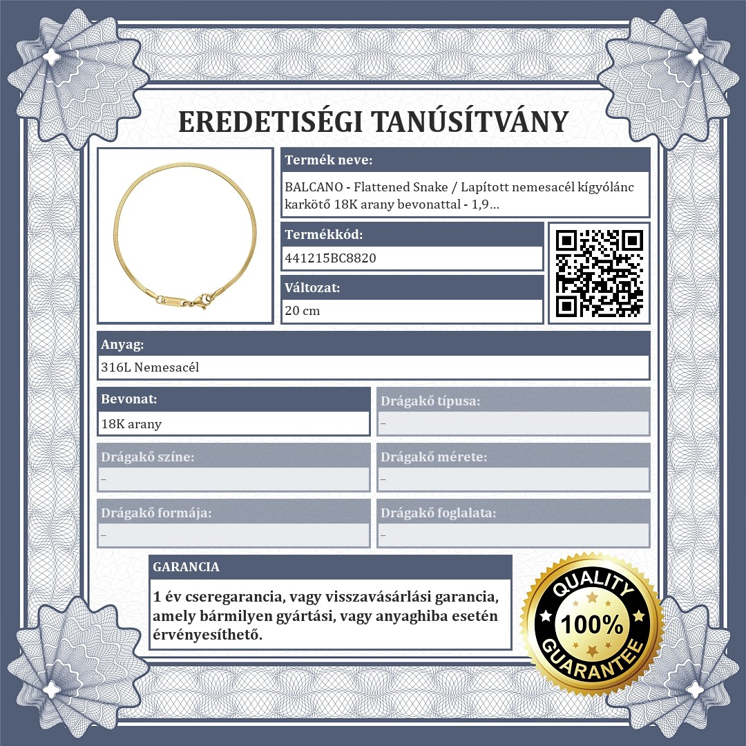 | Lánc típusa: | Lapított kígyólánc |