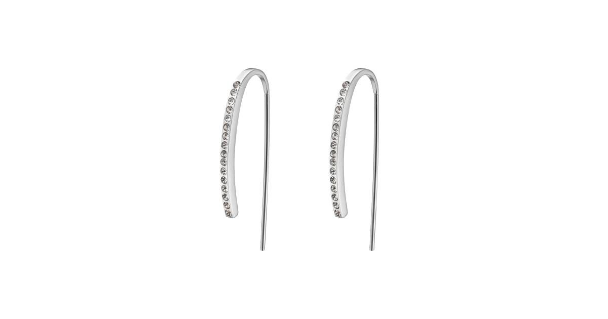 Különleges, íves formájú beakasztós fülbevaló, szikrázó, víztiszta cirkónia ékkövekkel kirakva. 316L orvosi rozsdamentes acél ékszer, amely anyagának köszönhetően rendkívül tartós, nem kopik, nem színeződik el.