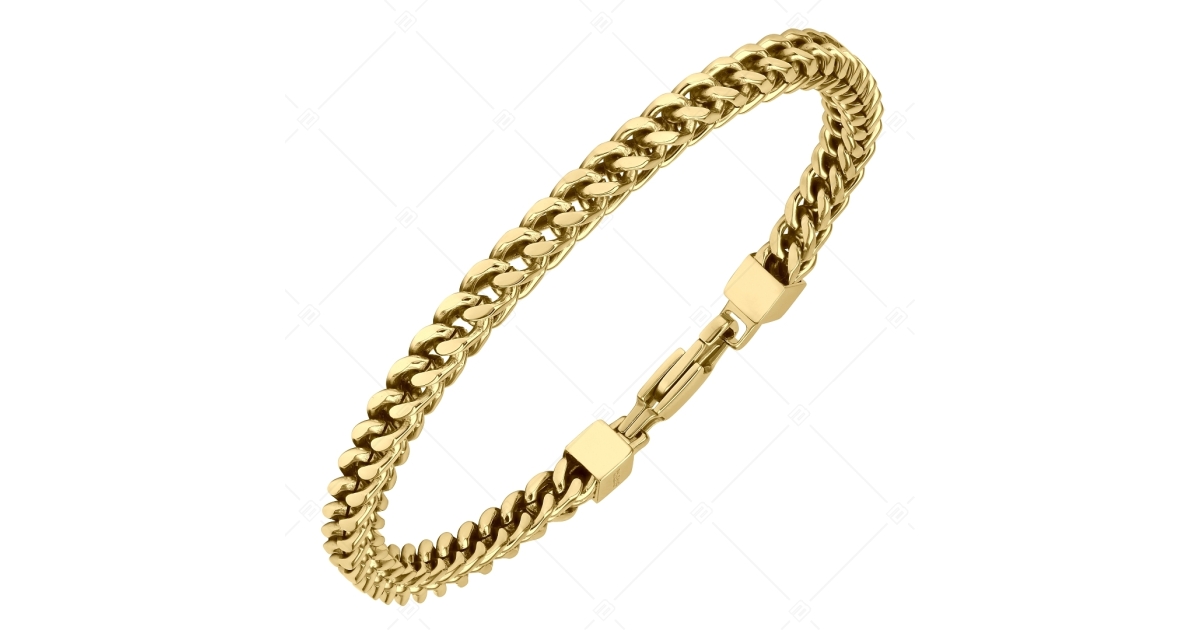 Allergiamentes 316L nemesacél rókafark lánc karkötő magasfényű polírozással 18K arany bevonattal. Anyagának köszönhetően nem kopik és nem színeződik el. Kényelmes lánc karkötő.