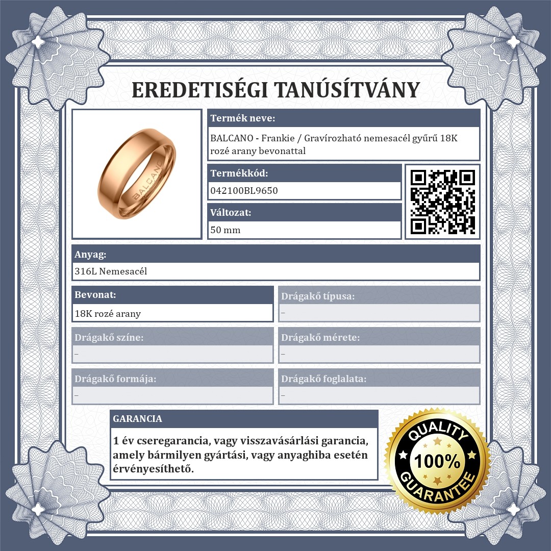 Kiválóan kombinálható klasszikus stílusának köszönhetően más BALCANO ékszerekkel, vagy gravírozható felületének köszönhetően, szuper egyedi ajándék lehet szeretteink számára.