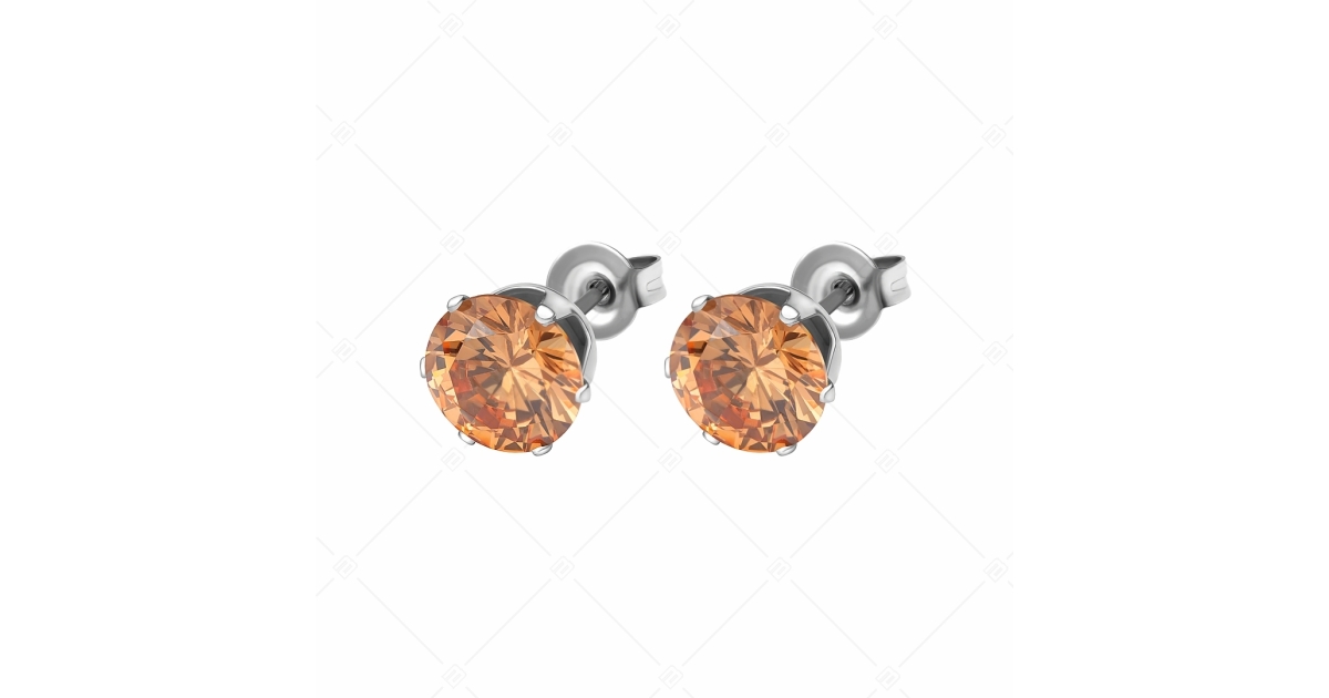 Pezsgő színű,kerek cirkónia ékkővel díszített bedugós fülbevaló 6 mm és 8 mm-es méretekben. 316L orvosi rozsdamentes acél ékszer, amely anyagának köszönhetően nem kopik, nem színeződik el.