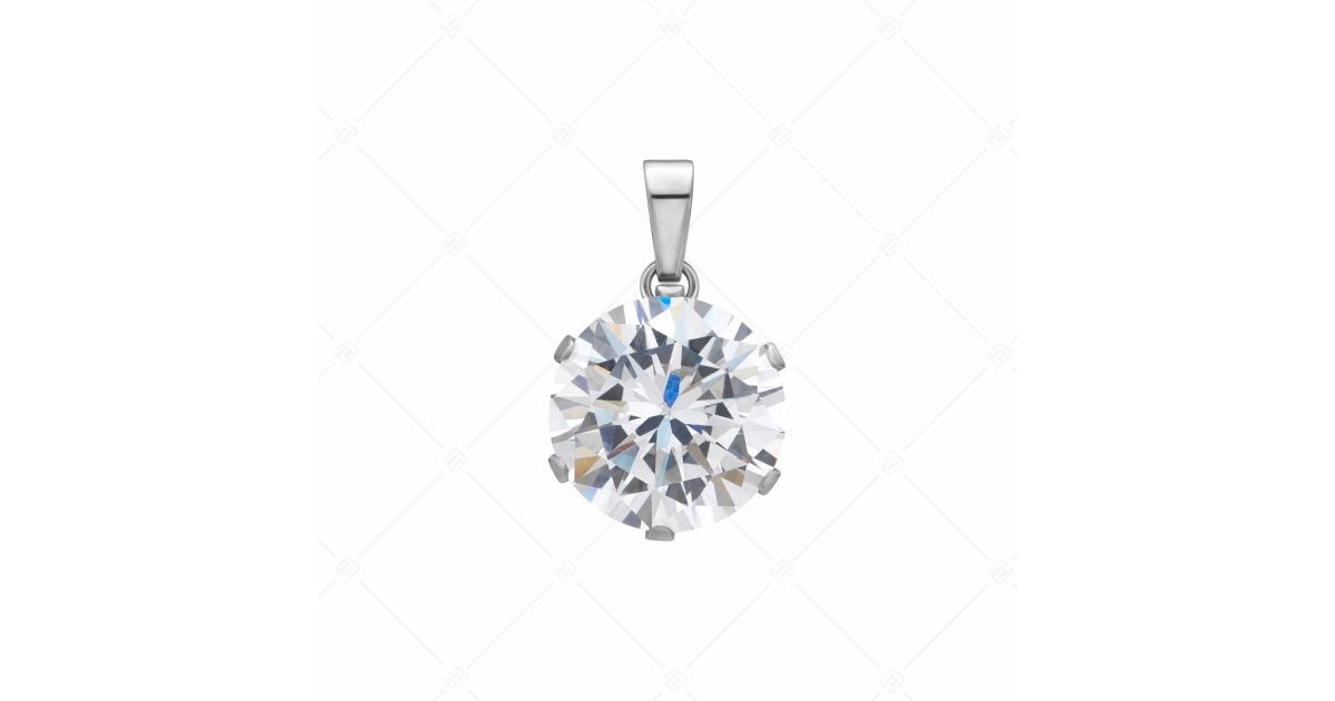 Víztiszta, kerek cirkónia ékköves medál. 316L orvosi rozsdamentes acél ékszer, amely anyagának köszönhetően nem kopik, nem színeződik el.