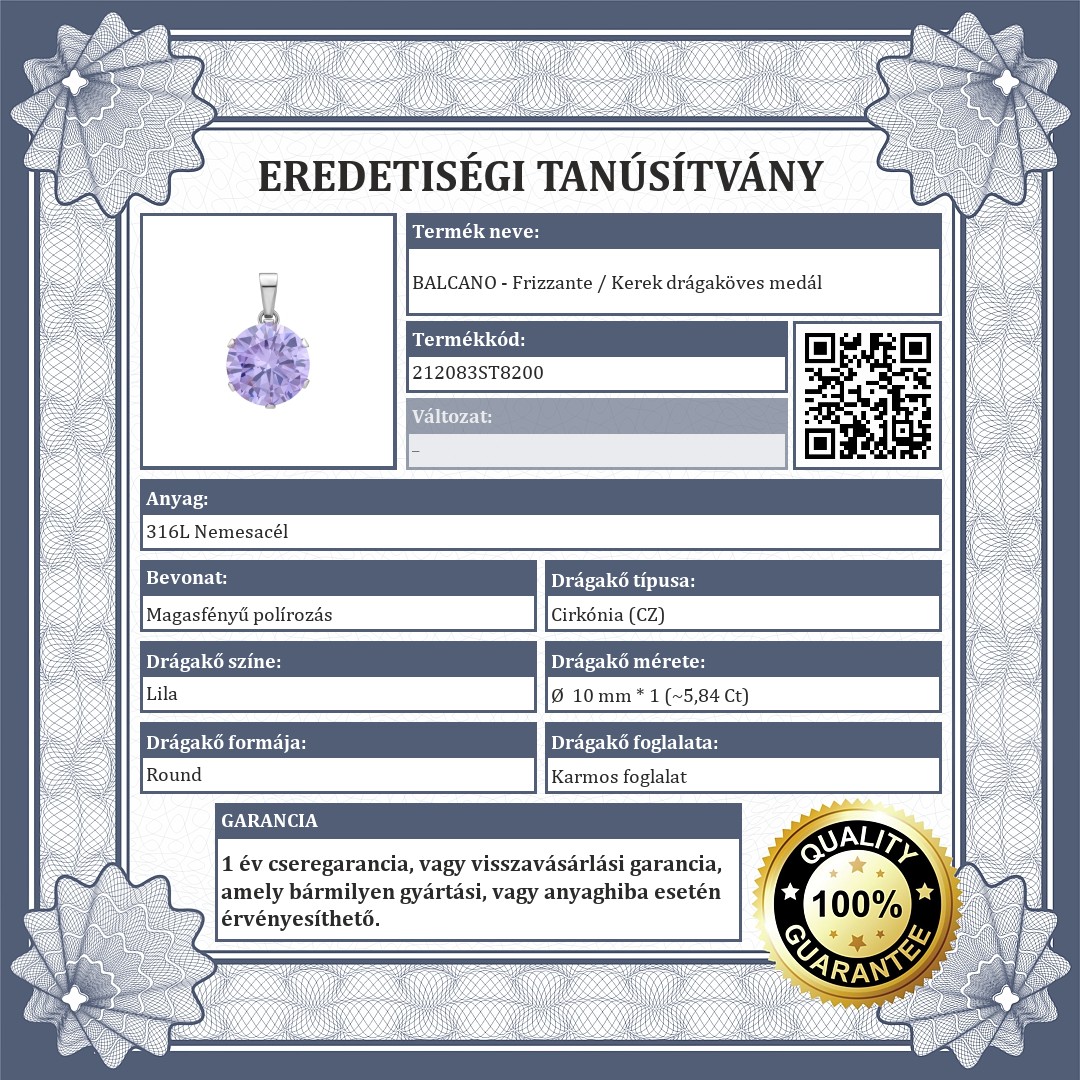 Levendula színű,kerek cirkónia ékköves medál. 316L orvosi rozsdamentes acél ékszer, amely anyagának köszönhetően nem kopik, nem színeződik el.