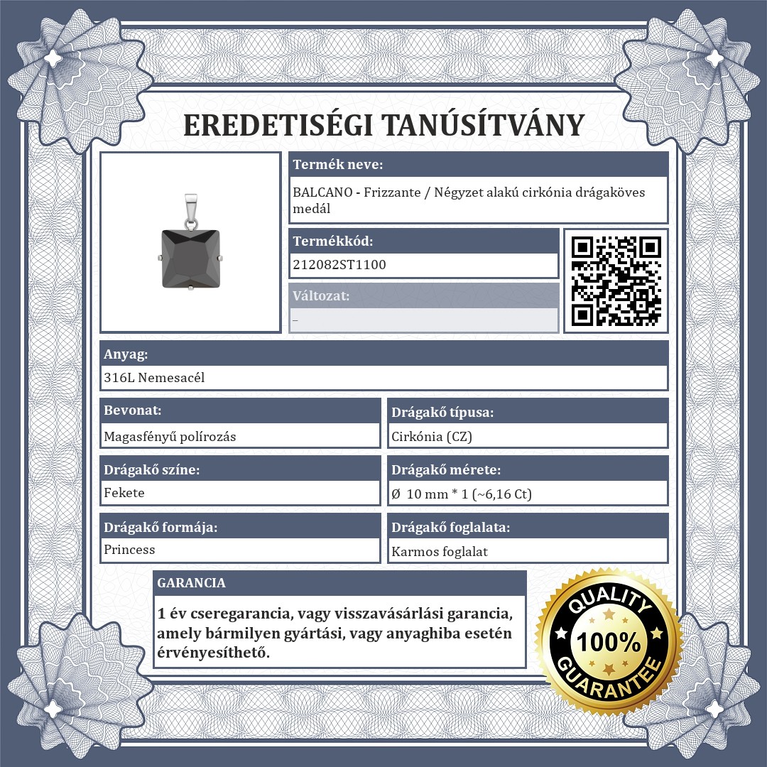 BALCANO - Frizzante / Négyzet alakú cirkónia drágaköves medál
