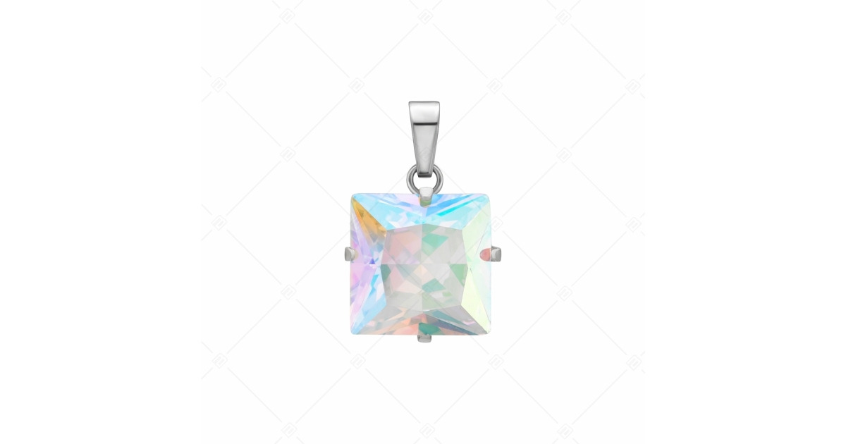 Színjátszó, négyzet alakú cirkónia ékköves medál. 316L orvosi rozsdamentes acél ékszer, amely anyagának köszönhetően nem kopik, nem színeződik el.