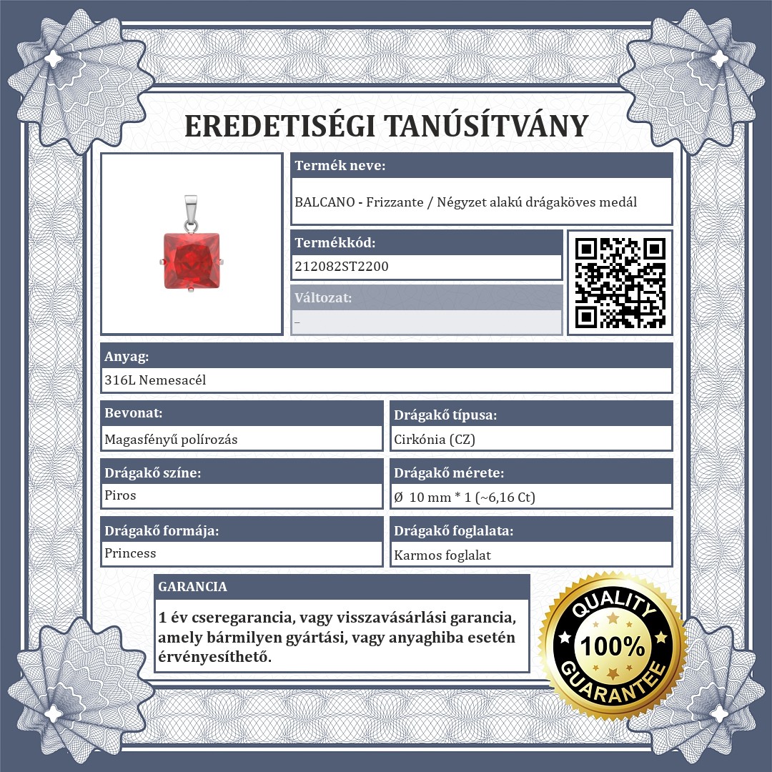 Jácint piros színű,négyzet alakú cirkónia ékköves medál. 316L orvosi rozsdamentes acél ékszer, amely anyagának köszönhetően nem kopik, nem színeződik el.