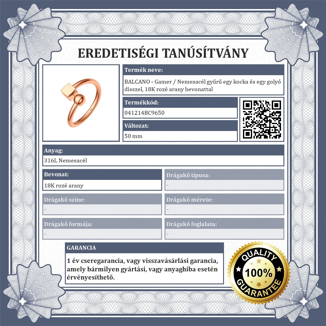 BALCANO - Gamer / Nemesacél gyűrű egy kocka és egy golyó dísszel, 18K rozé arany bevonattal