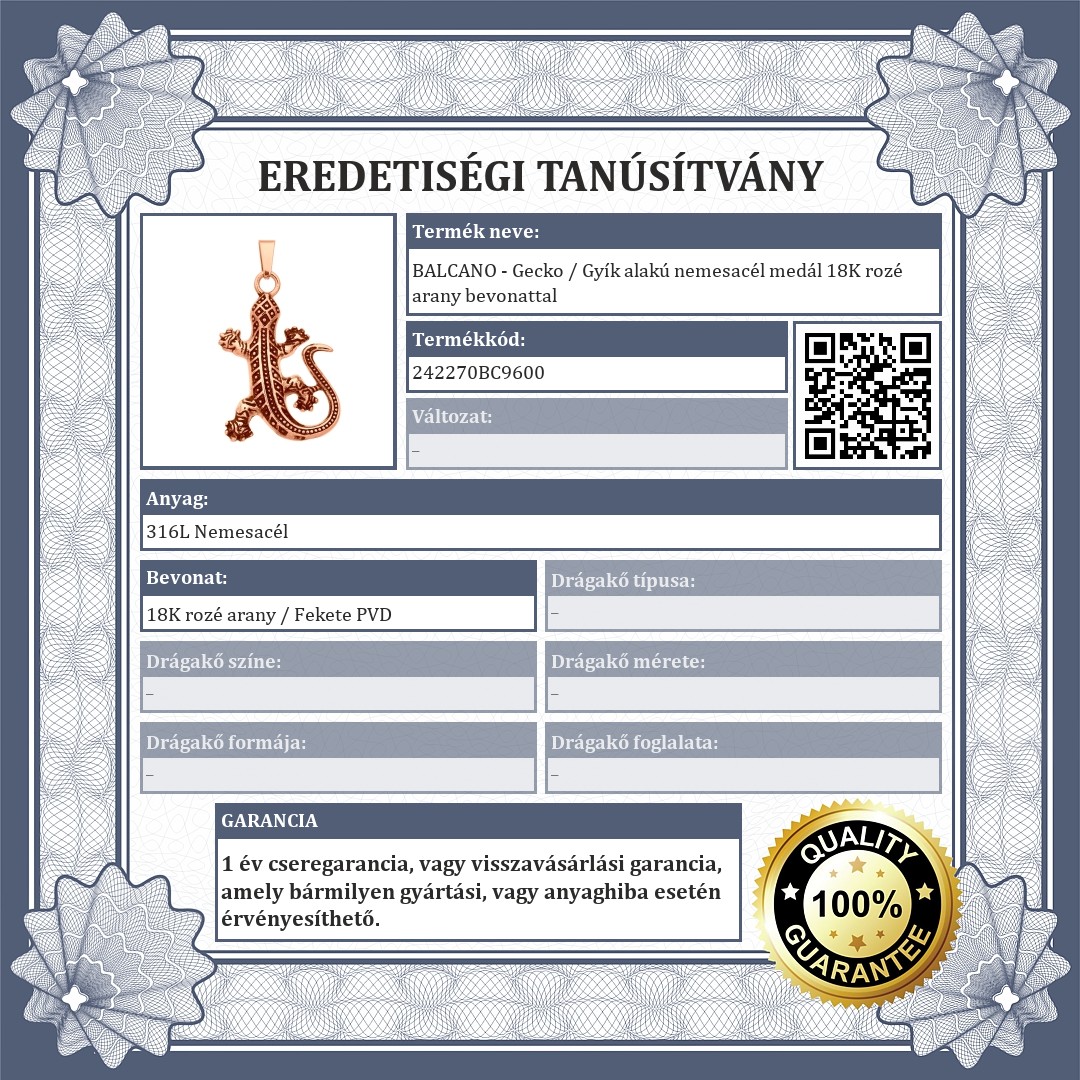 Gyík medál 316L orvosi rozsdamenetes nemesacélból 18K rozé arany bevonattal.