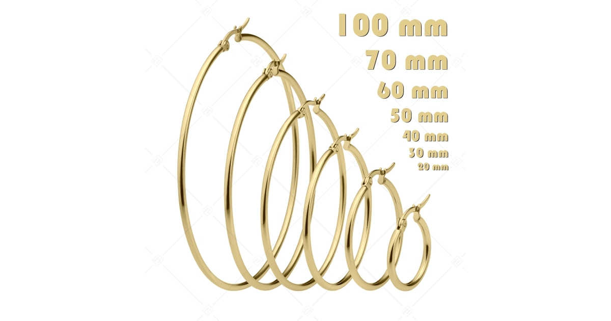 Klasszikus és divatos karika fülbevaló. 316L orvosi rozsdamentes acél ékszer, amely anyagának köszönhetően nem kopik, nem színeződik el. 18K arany bevonatú, különböző méretekben elérhető termék.