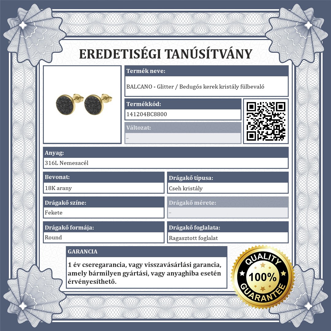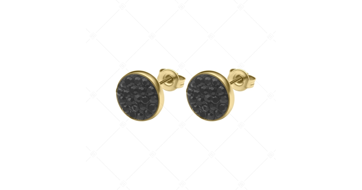 Mutatós, csillogó, fekete cseh kristályokkal kirakott bedugós fülbevaló. Tartós, antiallergén rozsdamentes 316L nemesacél anyagból készült, 18K arany bevonattal.