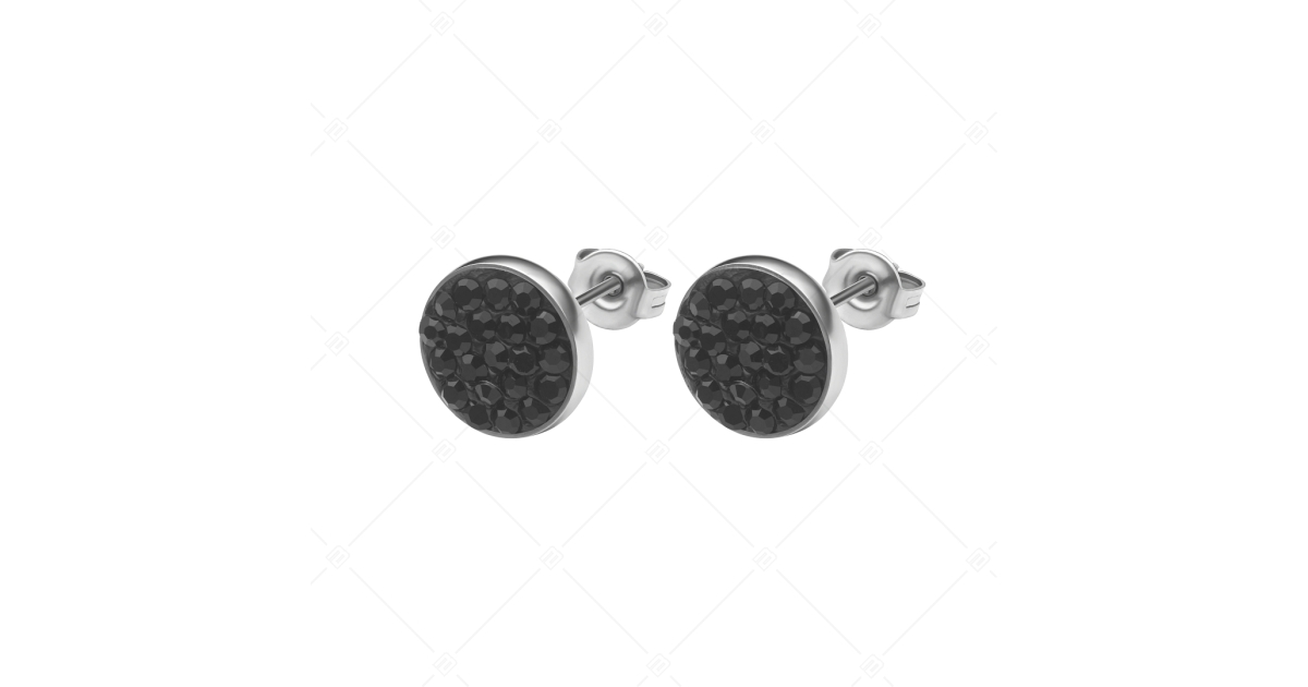 Mutatós, csillogó, fekete cseh kristályokkal kirakott bedugós fülbevaló. Tartós, antiallergén rozsdamentes nemesacél anyagból készült, magasfényű polírozással.