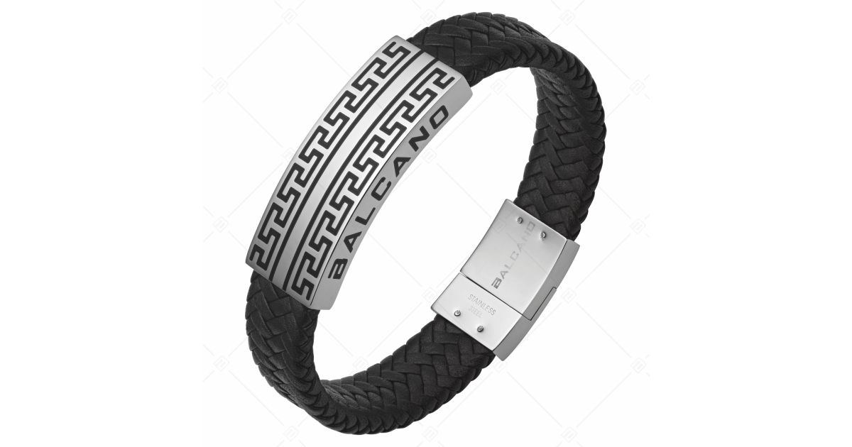 BALCANO - Greco / Fonott bőr karkötő dupla görög mintás nemesacél fejrésszel