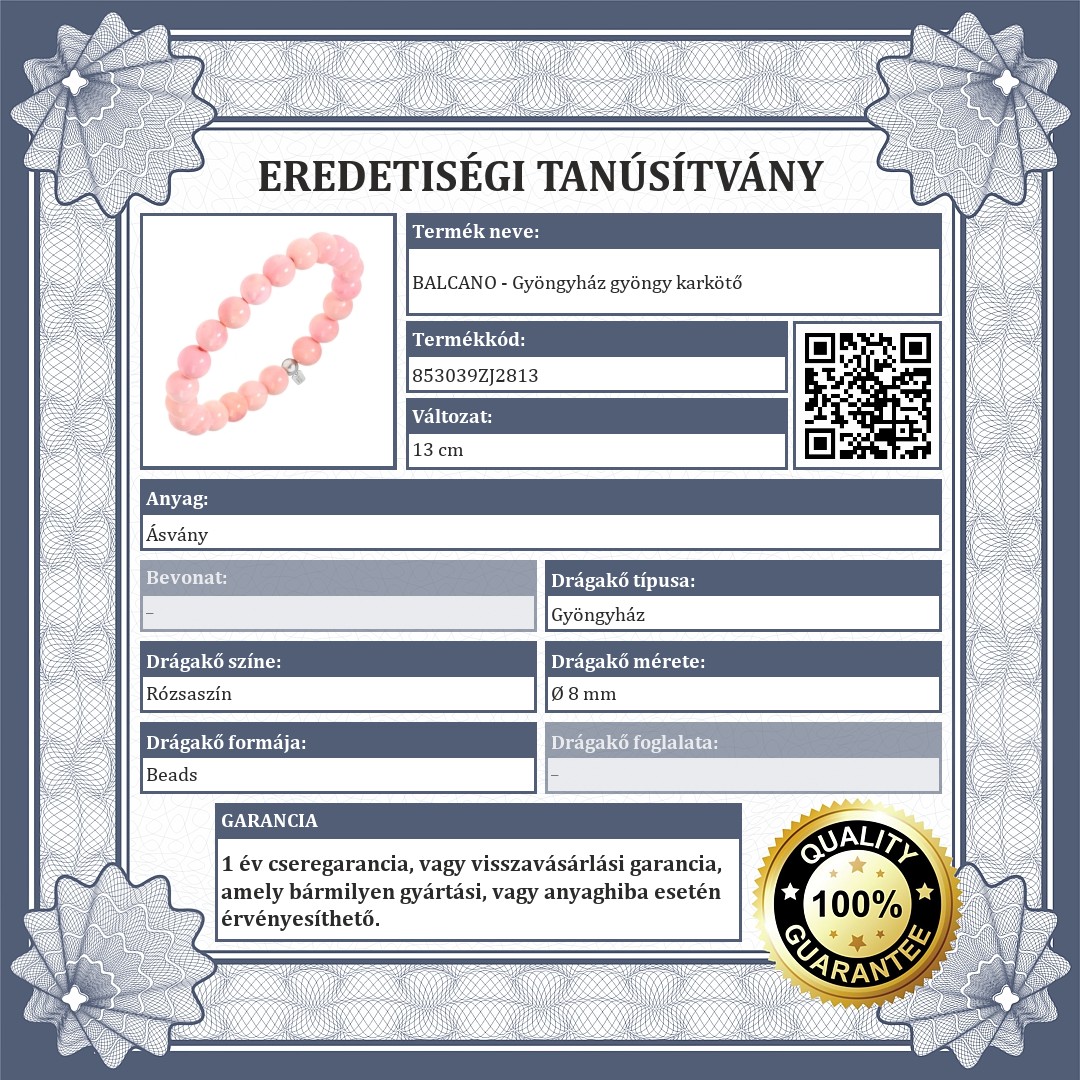 | Drágakő színe: | Retro rózsaszín / Halvány rózsaszín |
