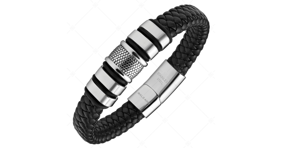 BALCANO - Harvey / Fonott marhabőr karkötő több részes nemesacél fejrésszel