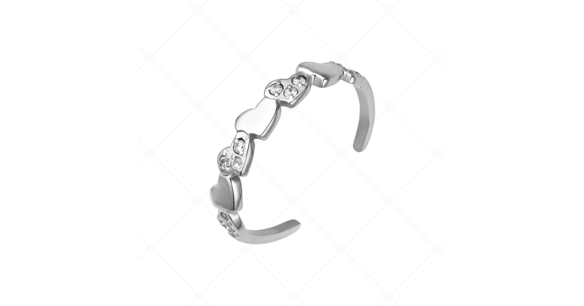 BALCANO - Hearts / Szivecskékből álló nemesacél lábujjgyűrű cirkónia drágakövekkel és magasfényű polírozással