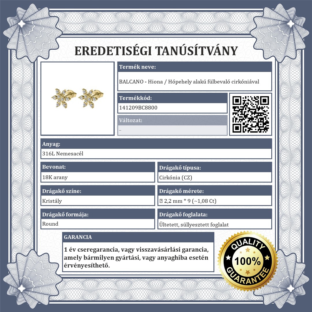 BALCANO - Hiona / Hópehely alakú fülbevaló cirkóniával