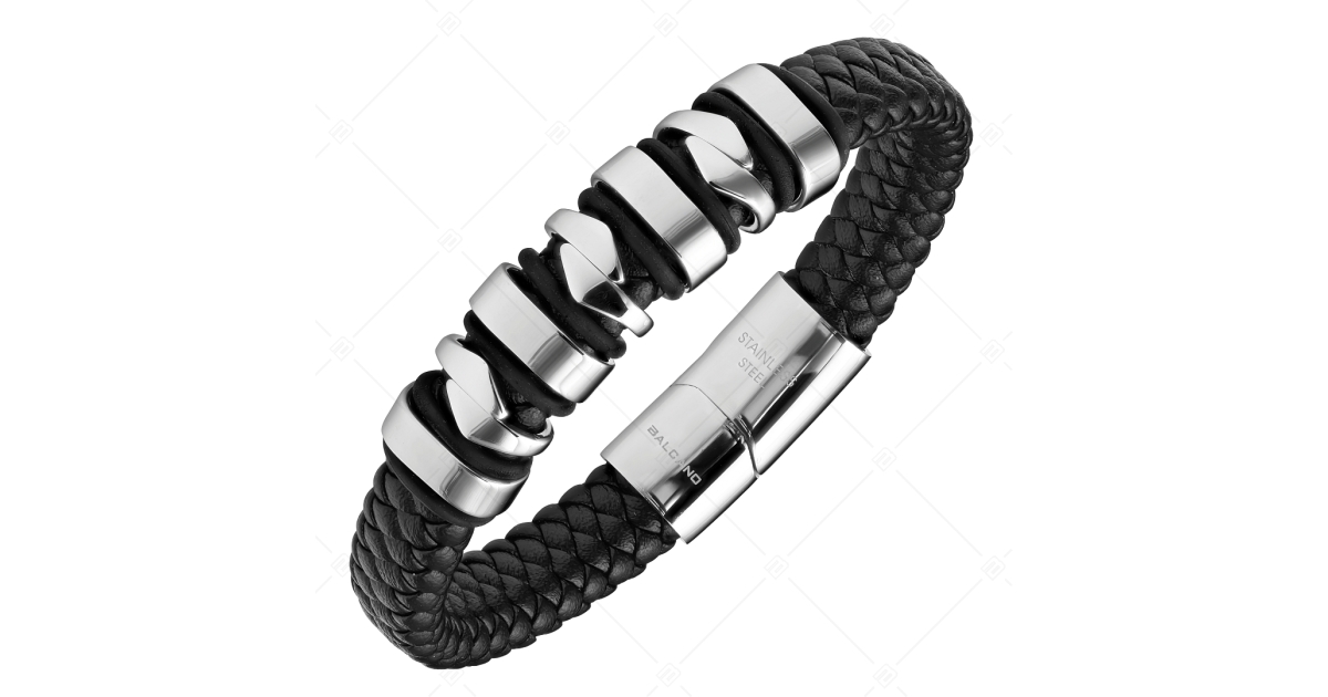 BALCANO - Hunter / Fonott marhabőr karkötő több részes, különleges nemesacél fejrésszel