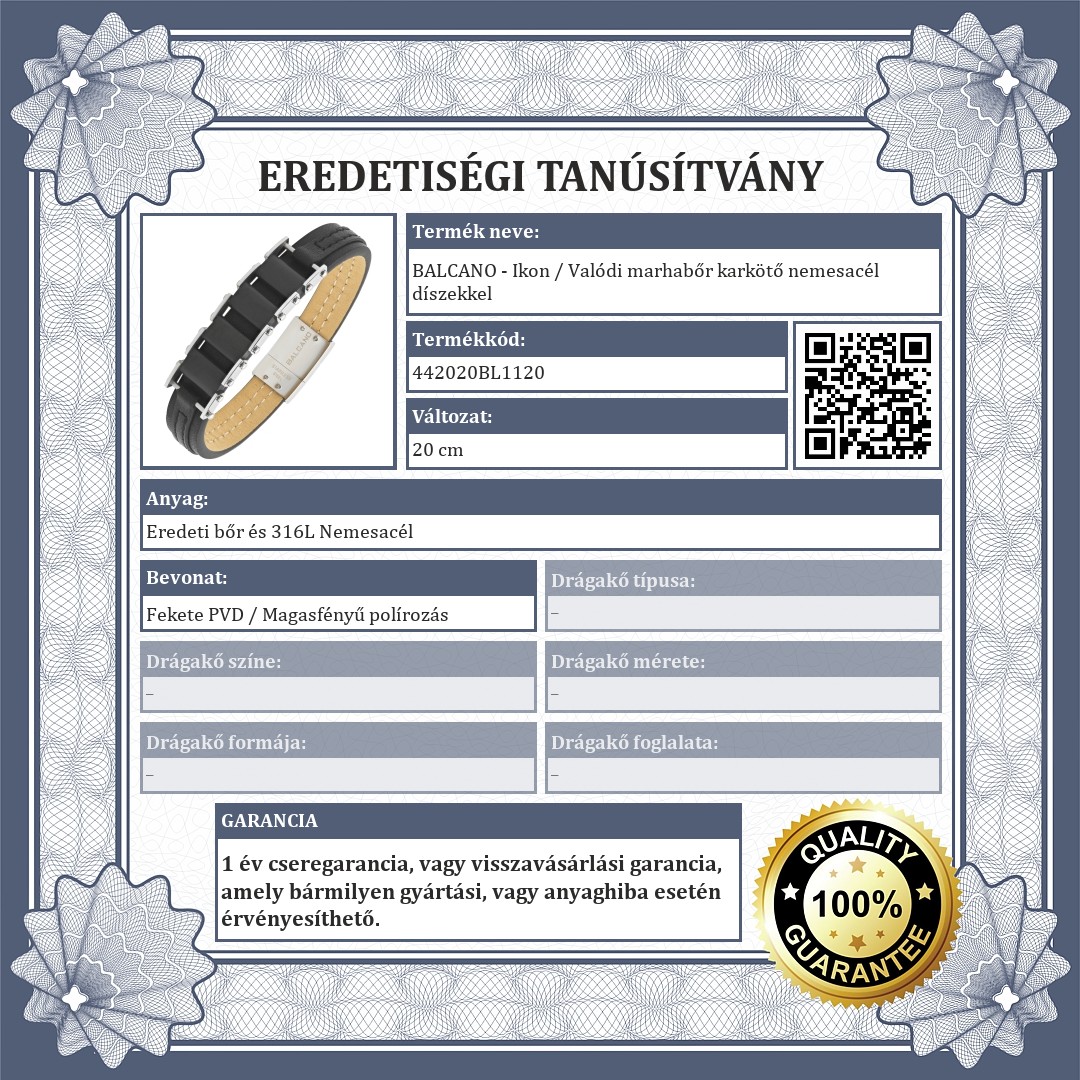 BALCANO - Ikon / Valódi marhabőr karkötő nemesacél díszekkel