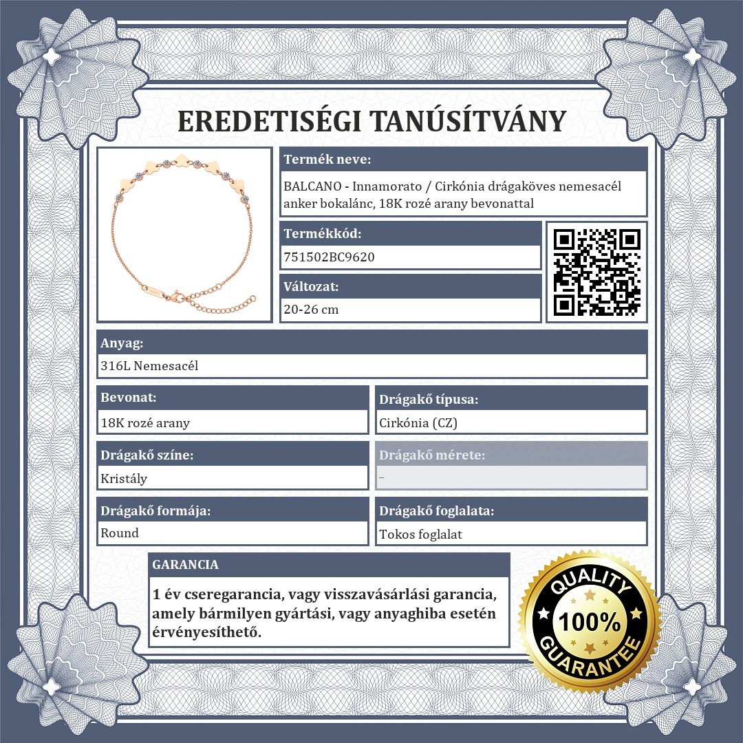 BALCANO - Innamorato / Cirkónia drágaköves nemesacél anker bokalánc, 18K rozé arany bevonattal