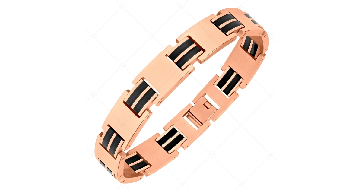 BALCANO - Jordan / Nemesacél karkötő 18K rozé arany bevonattal és fekete PVD bevonatos dupla berakásokkal