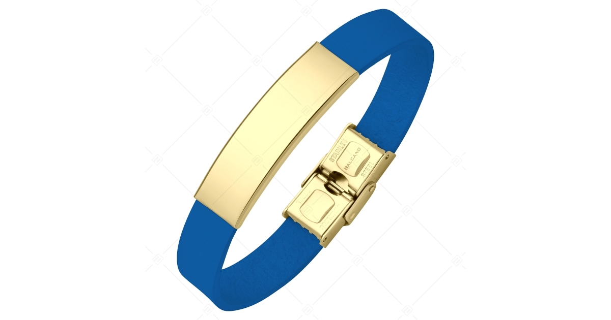 BALCANO - Kék színű bőr karkötő, gravírozható, téglalap alakú 18K arany bevonatú nemesacél fejrésszel