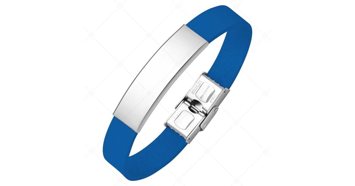 BALCANO - Kék színű bőr karkötő, gravírozható, téglalap alakú nemesacél fejrésszel