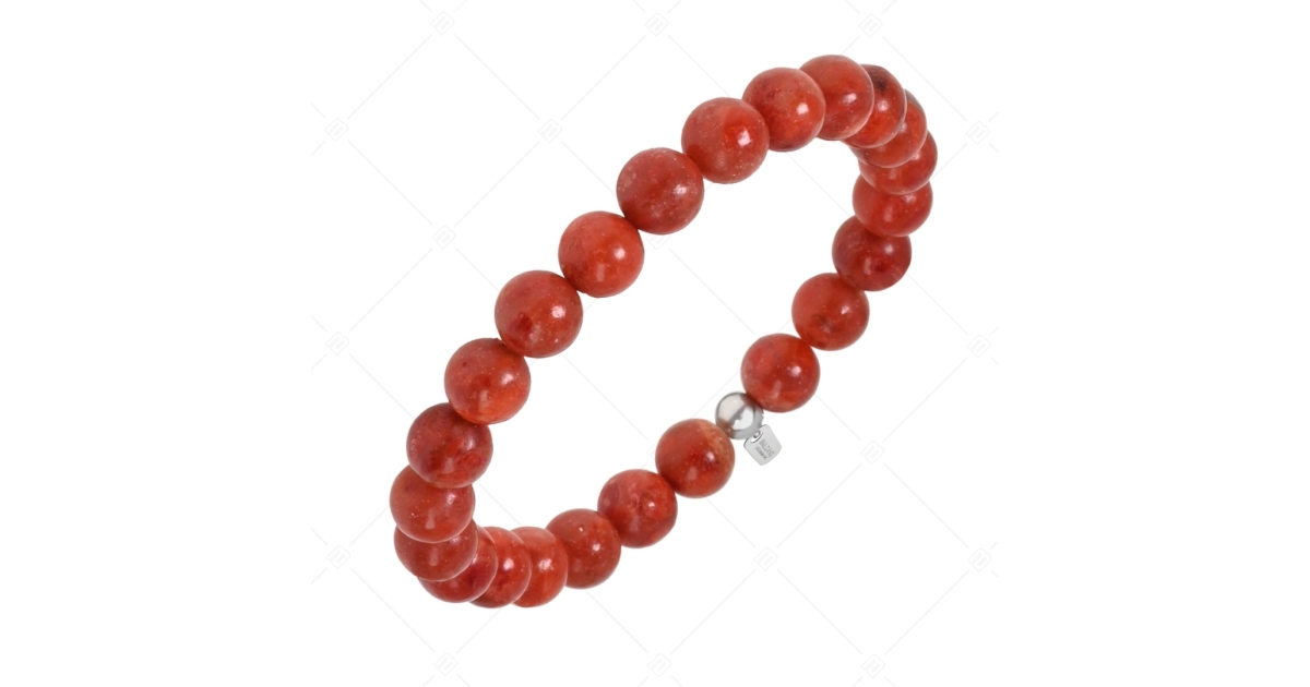 Korall ásványgyöngy karkötő. Eredeti korall őrleményből készült, színezett gyöngyök.