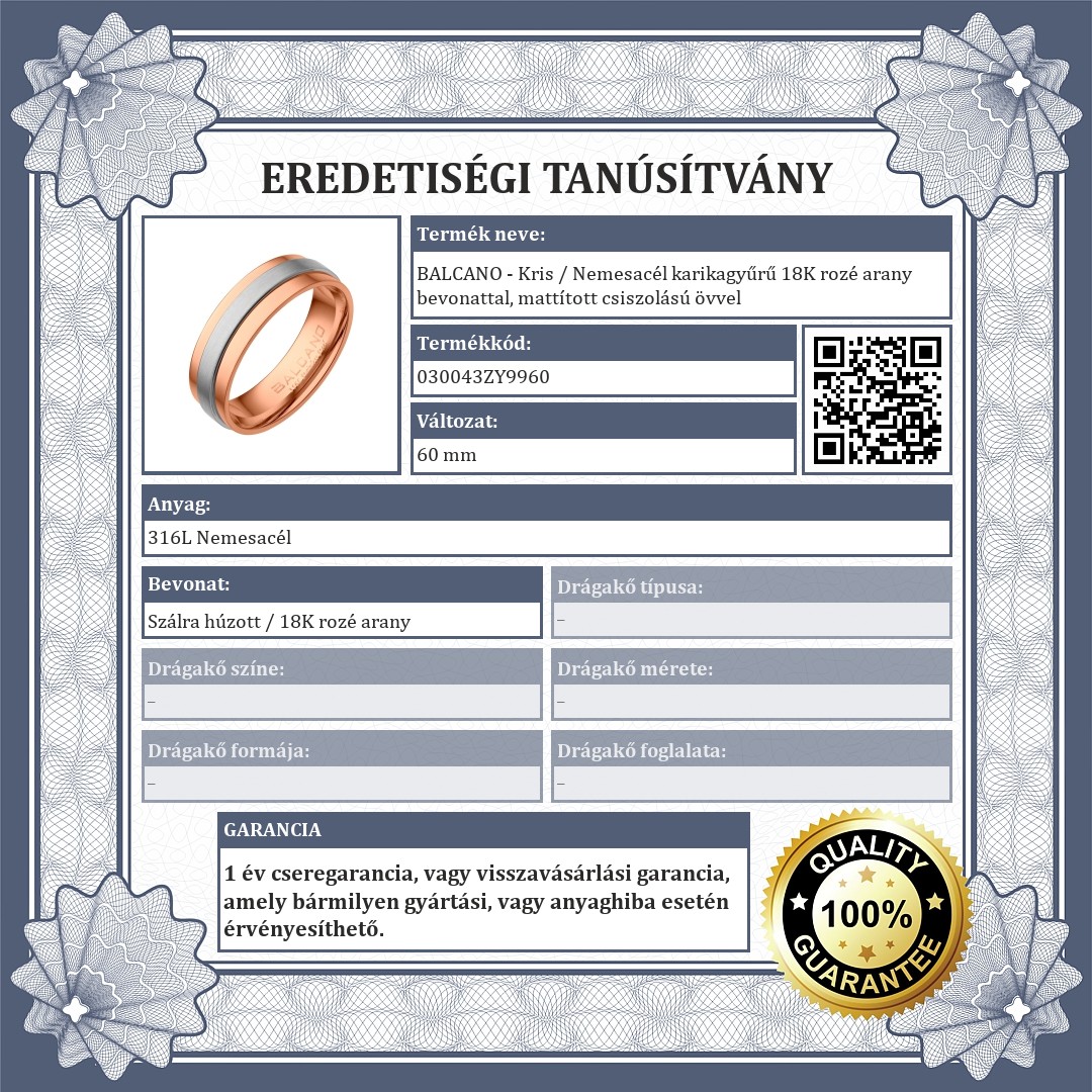 | Anyag színe: | Ezüst / Rozé arany (vörös arany) |