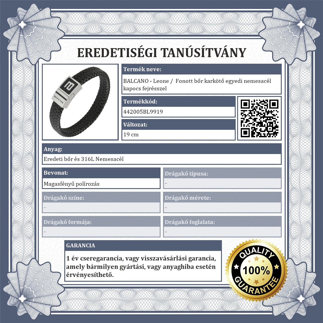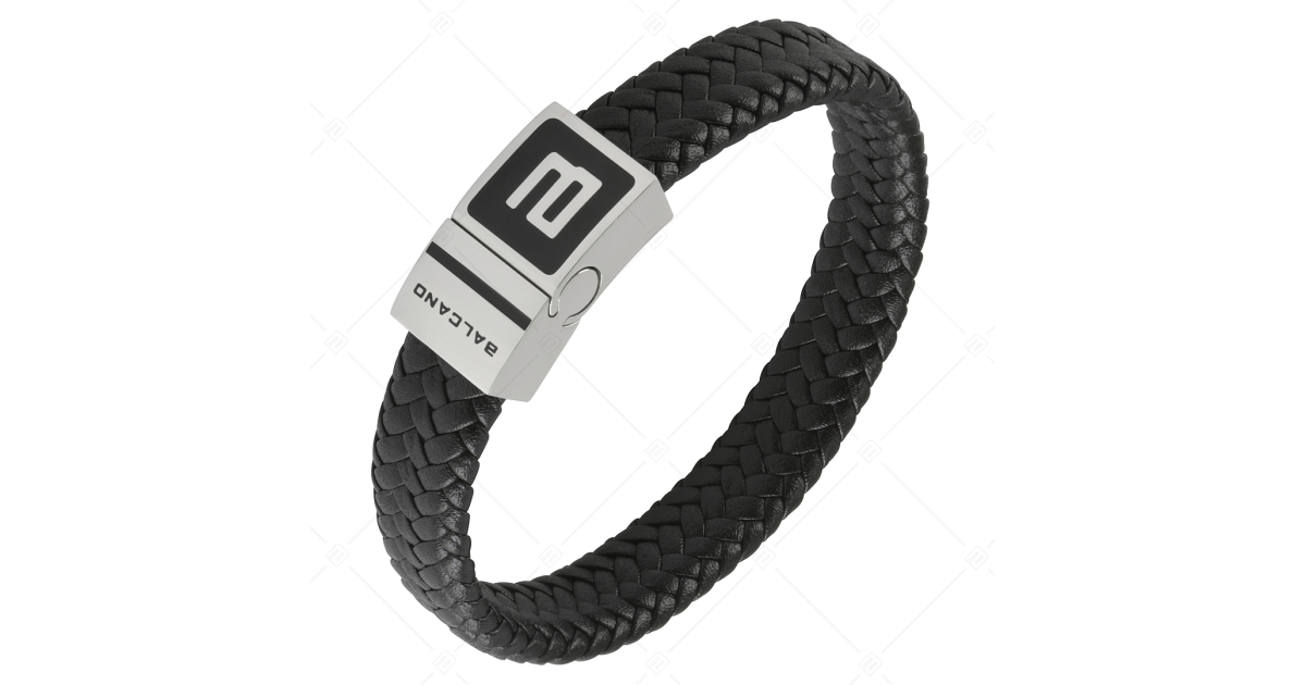 Fekete, fonott, valódi bőr karkötő. Antiallergén nemesacél fejrésszel, amelyet a BALCANO logója és felirata díszít, ami magába foglalja a mágneses kapcsot is. Klasszikus és letisztult ajándék férfiak számára.
