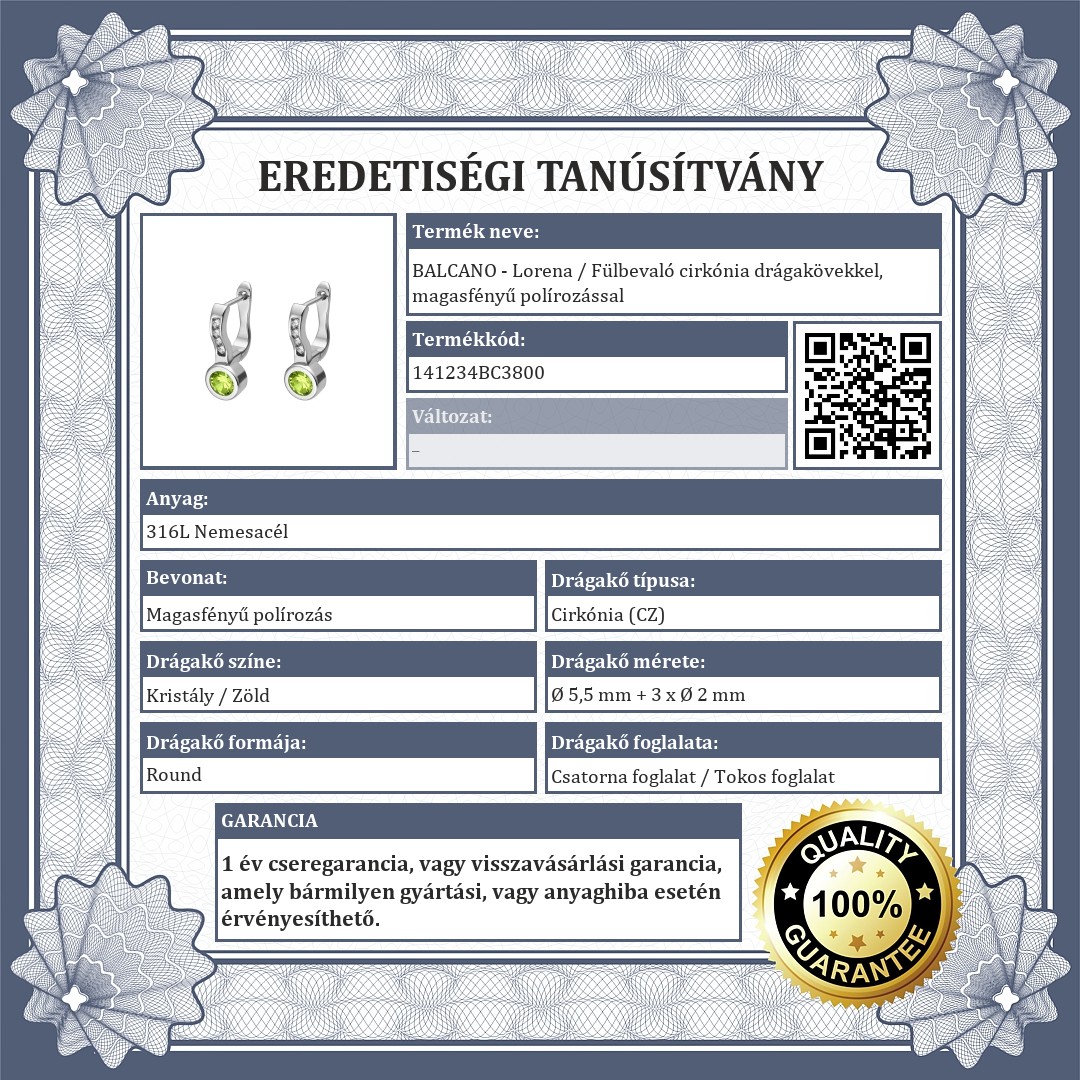 BALCANO - Lorena / Fülbevaló cirkónia drágakövekkel, magasfényű polírozással