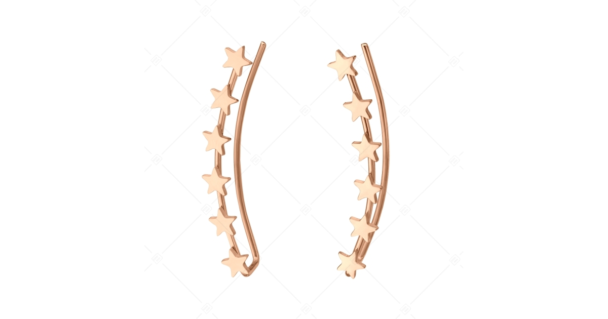 Divatos, fül ívére simuló fülbevaló, amelyet egy sorban több kisebb csillag díszít. 316L orvosi rozsdamentes, antiallergén nemesacél kiegészítő, csillogó 18K rozé arany bevonattal.