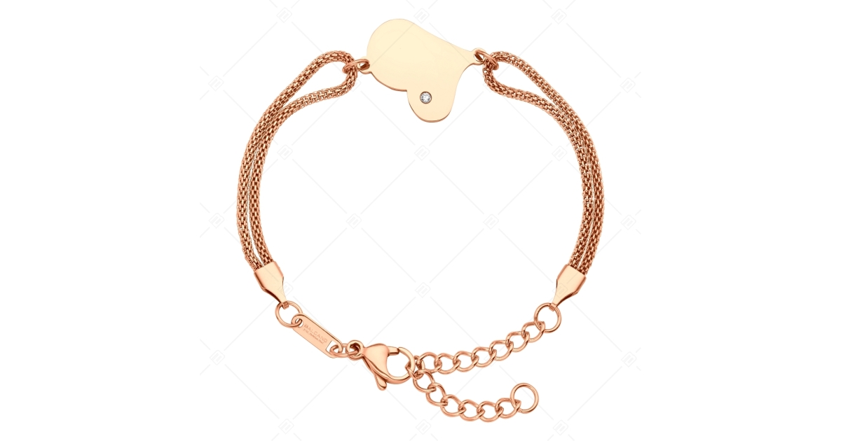 BALCANO - Lucy / Aszimetrikus szívvel díszített nemesacél karkötő cirkónia kristállyal és 18K rozé arany bevonattal