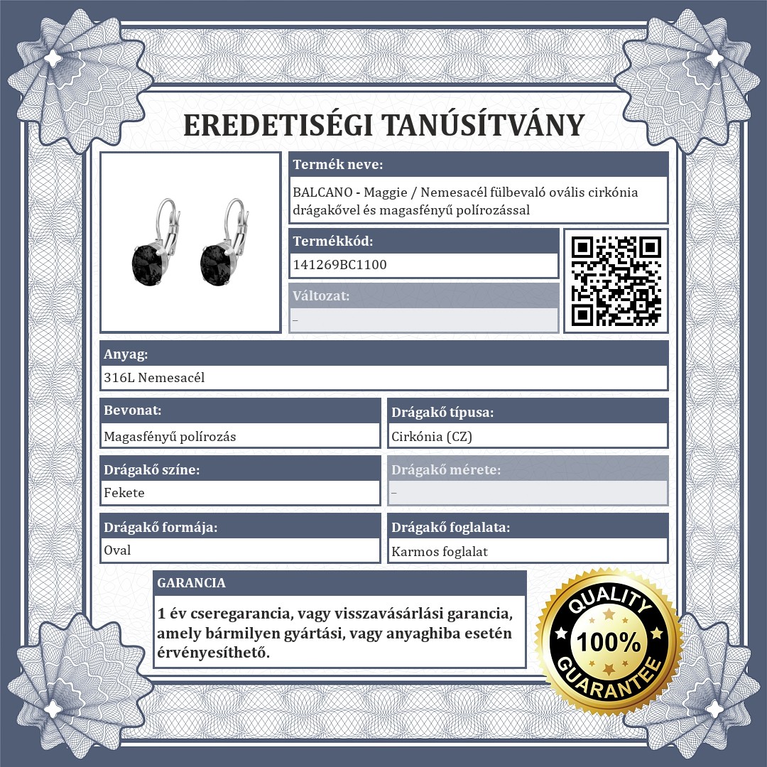 BALCANO - Maggie / Nemesacél fülbevaló ovális cirkónia drágakővel és magasfényű polírozással