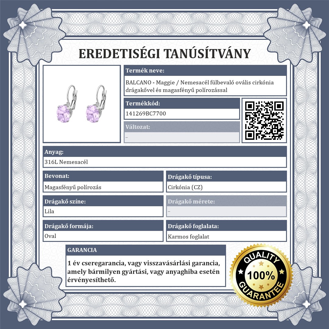 | Drágakő színe: | Levendula |