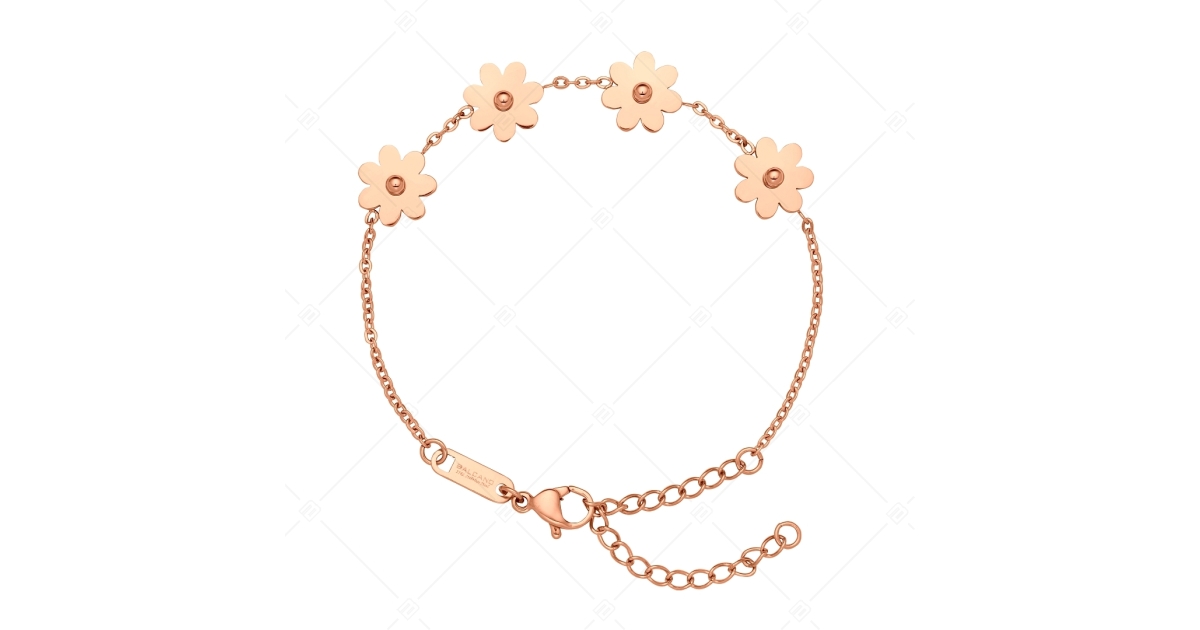BALCANO - Marguerite / Nemesacél karkötő százszorszép alakú díszekkel és 18K rozé arany bevonattal