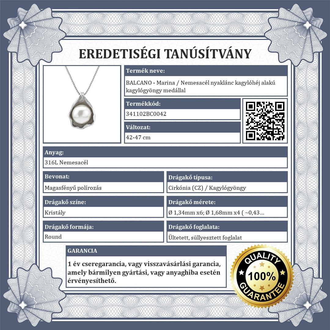 BALCANO - Marina / Nemesacél nyaklánc kagylóhéj alakú kagylógyöngy medállal