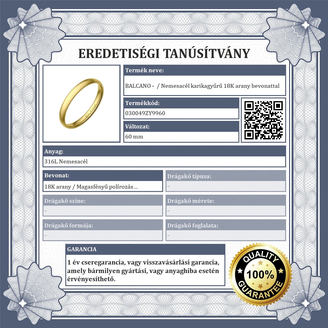 | Bevonat: | 18K arany / Magasfényű polírozás |