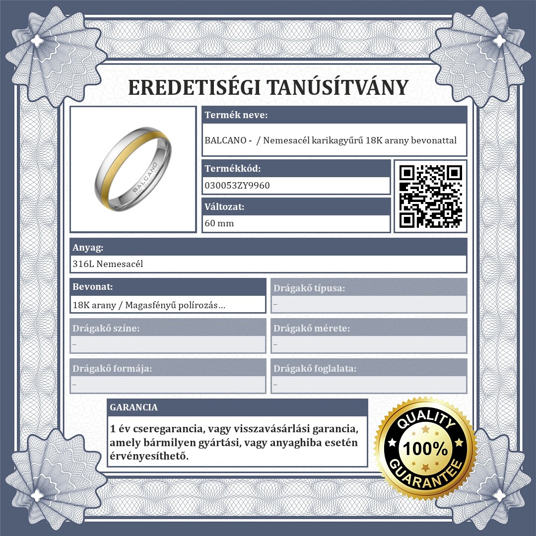 | Bevonat: | 18K arany / Magasfényű polírozás |