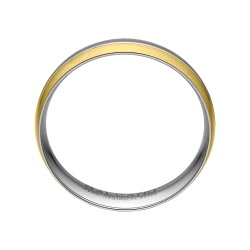 Antiallergén 316L nemesacél karikagyűrű körben egy kissé átlósan végigfutó szálrahúzott (matt) sávval és 18K arany bevonattal, a többi részén magas fényű polírozással. Divatos és elegáns ékszer. Lekerekített, sima belső kialakításának köszönhetően maximálisan kényelmes viselet.