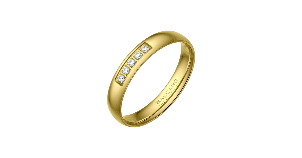 BALCANO - / Nemesacél karikagyűrű cirkónia drágakövekkel, 18K arany bevonattal