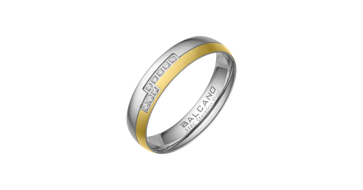 BALCANO - / Nemesacél karikagyűrű cirkónia drágakövekkel, 18K arany bevonattal