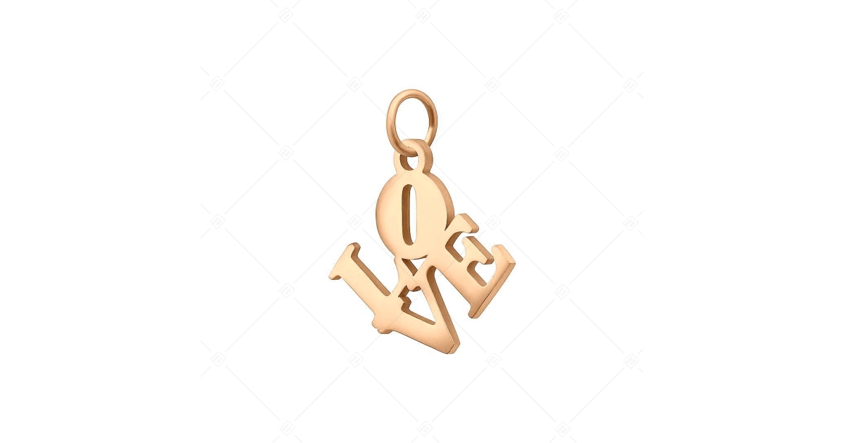 BALCANO - Nemesacél LOVE feliratú charm, 18K rozé arany bevonattal