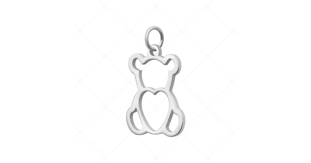 Antiallergén, 316L nemesacél áttört, maci alakú charm. Tartós, kiváló minőségű kiegészítő, ezüst színű, magasfényű polírozással.