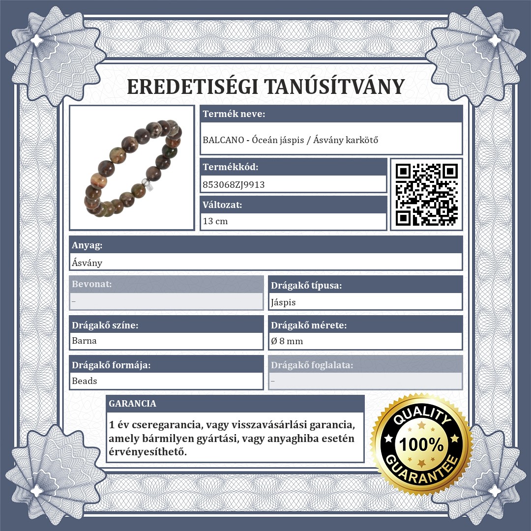 A drágakövek eredetiségét a hivatalos minőségi tanúsítvány bizonyítja.