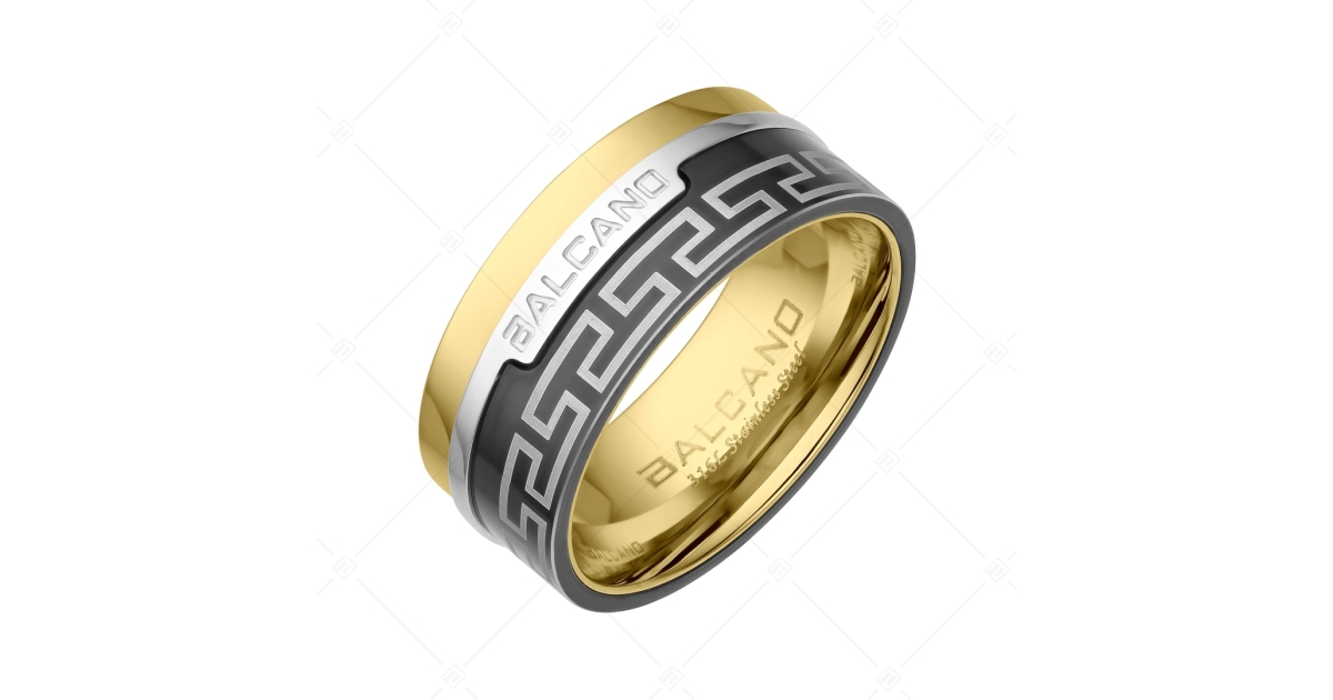 BALCANO - Orion / Görög mintás nemesacél gyűrű magasfényű polírozással és 18K arany bevonattal