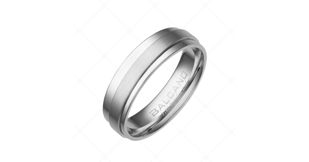 Antiallergén 316L nemesacél karikagyűrű körben egy kissé átlósan végigfutó szálrahúzott (matt) sávval, a többi részén magas fényű polírozással. Divatos és elegáns ékszer. Lekerekített, sima belső kialakításának köszönhetően maximálisan kényelmes viselet.