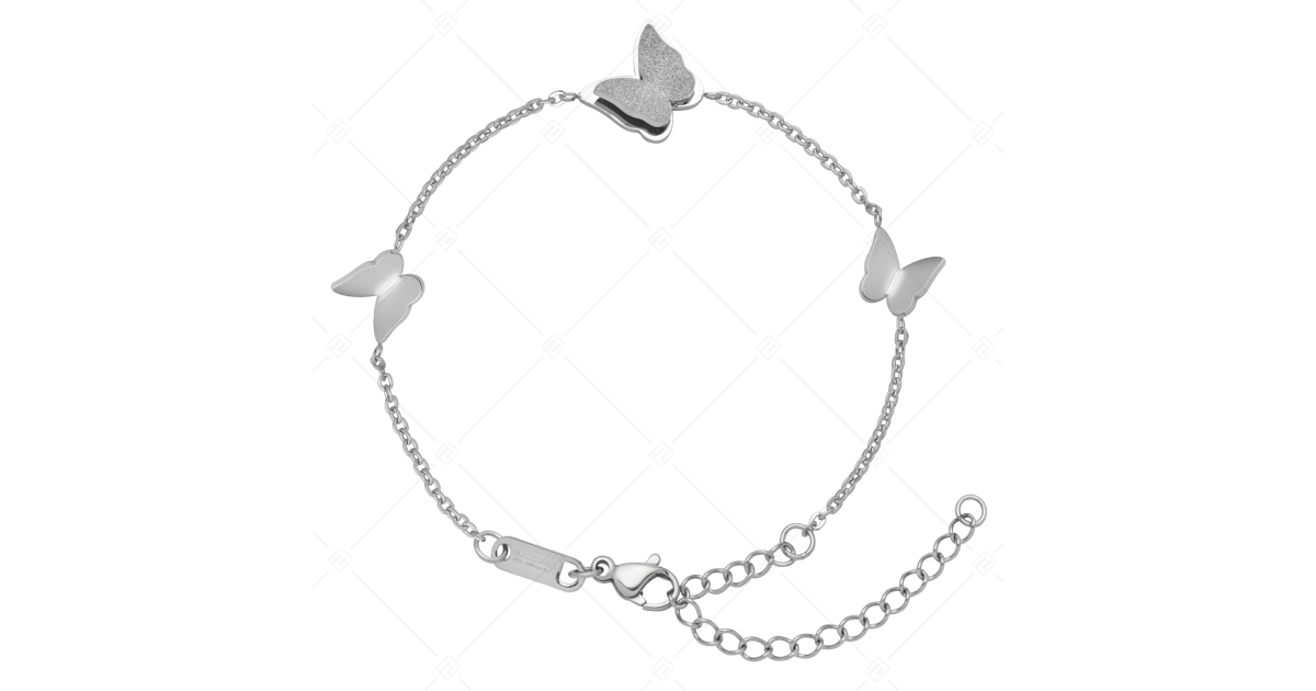 BALCANO - Papillon / Nemesacél csillámos felületű pillangóval díszített karkötő, magasfényű polírozással