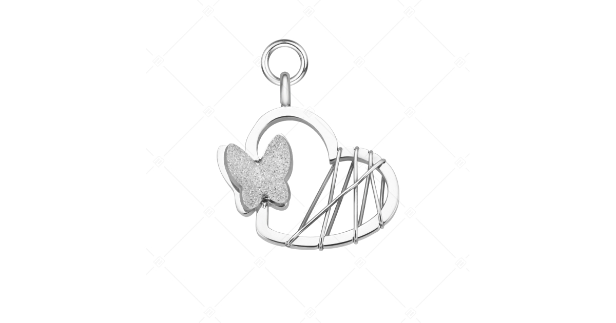 BALCANO - Papillon / Nemesacél pillangós szív alakú charm magasfényű polírozással