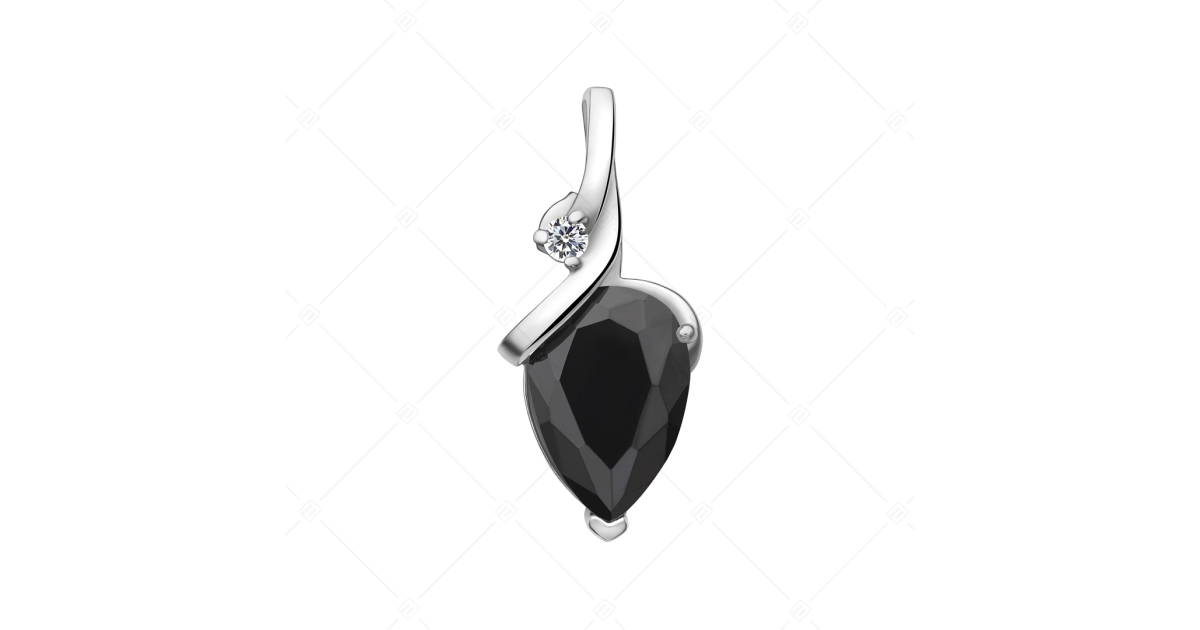 Gyönyörű csillogású orvosi 316L nemesacél medál. Magasfényű polírozással készült, rendkívül tartós nemesacél foglalatot egy kisebb, kerek cirkónia díszíti, amelyet egy nagyobb, csepp alakú fekete ékkő tesz még káprázatosabbá.