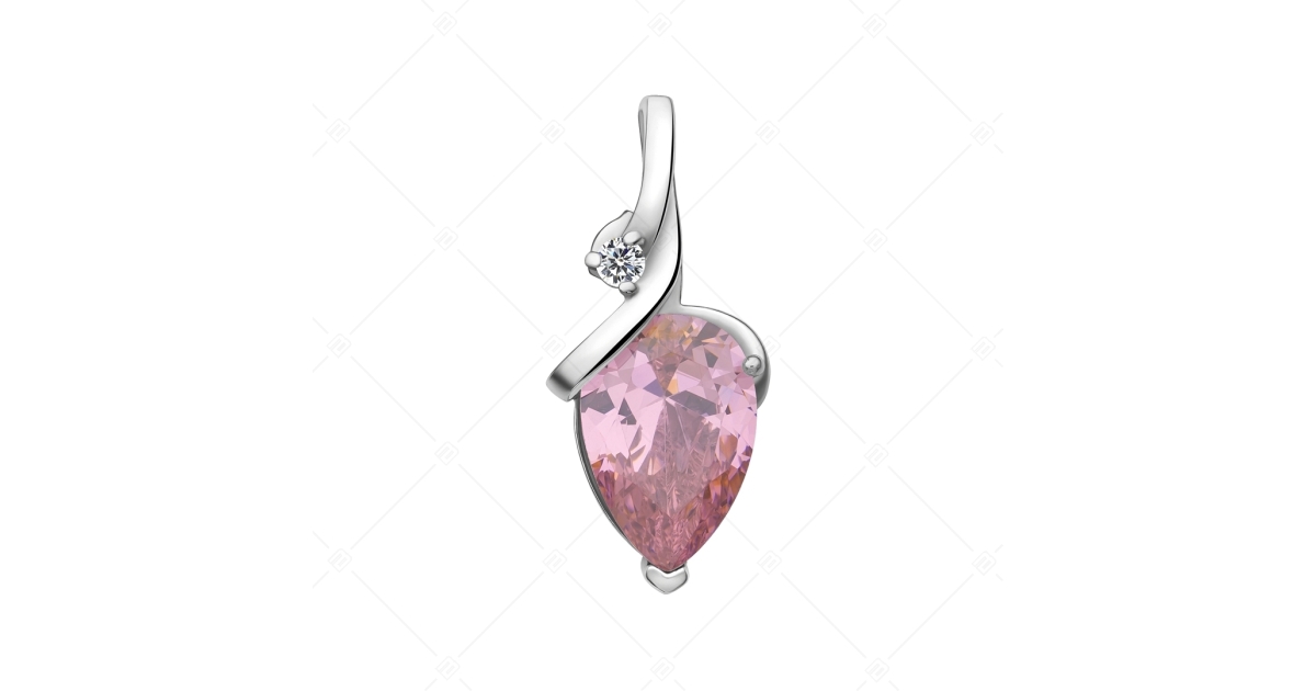 Gyönyörű csillogású orosi 316L nemesacél medál. Magasfényű polírozással készült, rendkívül tartós nemesacél foglalatot egy kisebb, kerek cirkónia díszíti, amelyet egy nagyobb, csepp alakú halvány rózsaszínű ékkő tesz még káprázatosabbá.